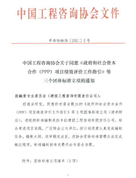 中国工程咨询协会关于同意《政府和社会资本合作(PPP)项目绩效评价工作指引》等三个团体标准立项的通知 - 通知公告 (cnaec.com.cn)