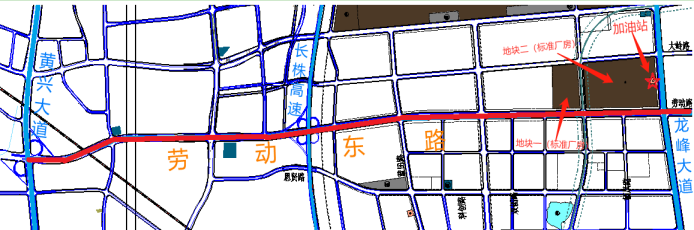 6060米;拟建标准厂房位于明月路以东,龙峰大道以西,大岭路以南,劳动东路以北,拟建加油站位于龙峰大道以西,劳动路以北,大岭路以南。