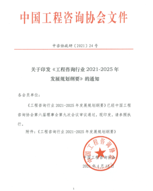 关于印发《工程咨询行业2021-2025年发展规划纲要》的通知 - 通知公告 (cnaec.com.cn)